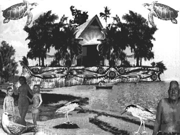 Father Lumino Guzman, a Jesuit, records in his private journal that a person using the name Gauguin visited Belau for a brief period during his tenure as missionary in those parts. The person described by the priest was someone who appeared to be unhappy and in need of a shave. We do not know if this was in fact the famous French painter on his way to Tahiti, but it seems at least possible. A painting with all the stylistic earmarks of a Gauguin was reported to the Cultural Affairs Department in 1952. It is said to be held inside a shed with no doors or windows that was built by persons unknown in the northern village of Ngalrod.