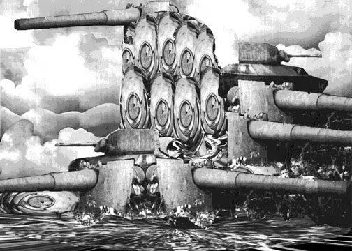 In the center of the Indian Ocean there is a fortress island where time has no meaning and no sound is ever heard. Its inhabitants are the dead of the ages, and, being perfect reflections of the living, they build their monuments with the materials at hand, using for mortar a mixture in equal portions of hatred and fear. It is a place where arrivals are frequent and departures unheard of, though there is no fear of overcrowding, the dead having in common a certain compactness that lends itself to superimposition. Buleria Madrugada | Belau Belau | Fortress of the Dead | Abbe at Urban Plaza of the Patriots | Bedou | Spawning Ground | Space Station M | Maoam |